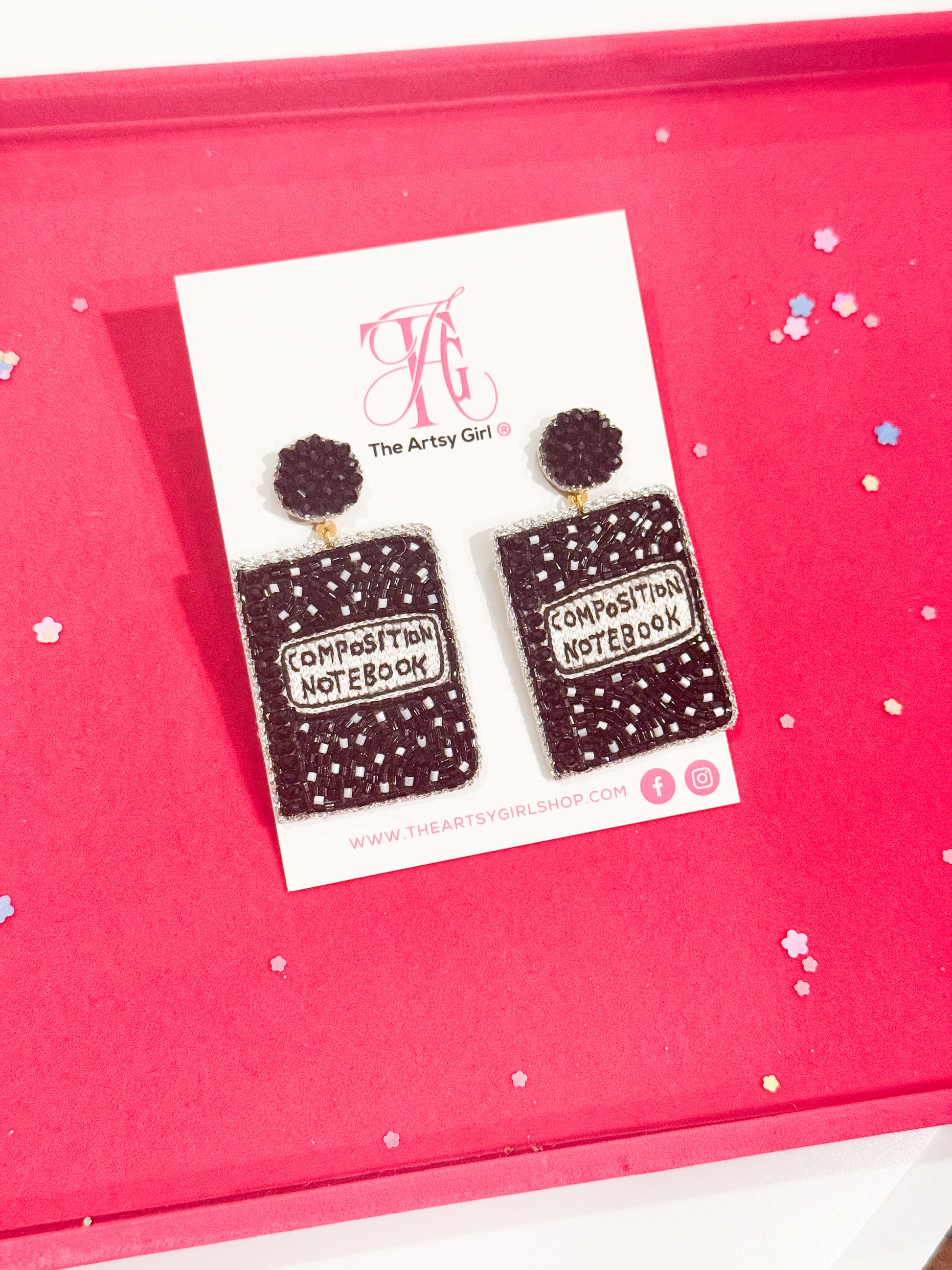 Turn heads in the hallway with our Class Act earrings – the ultimate accessory for teachers, students, and anyone who loves a little scholastic flair! These handcrafted beauties are inspired by the iconic black-and-white composition notebook and brought to life with intricate beadwork and playful sparkle.