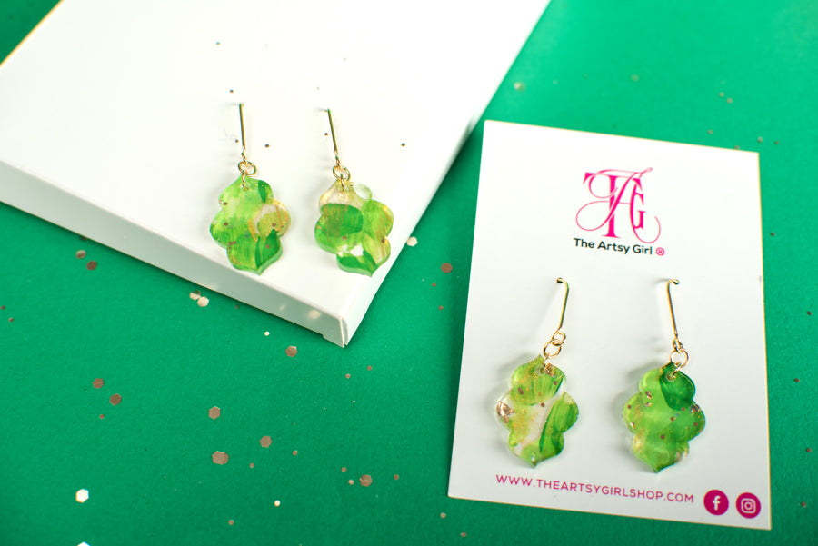 Fresh, vibrant, and effortlessly chic, the Emerald Bloom Earrings capture the beauty of nature with their delicate floral shape, translucent green hues, and shimmering gold flecks. Lightweight and elegant, they’re perfect for adding a touch of sparkle to any outfit—whether it’s brunch, a garden party, or a casual day out.