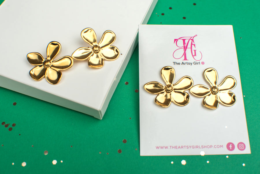 Add some sparkle to your style with these gold plated, tarnish-free flower earrings! These stud earrings are also waterproof for long-lasting wear.