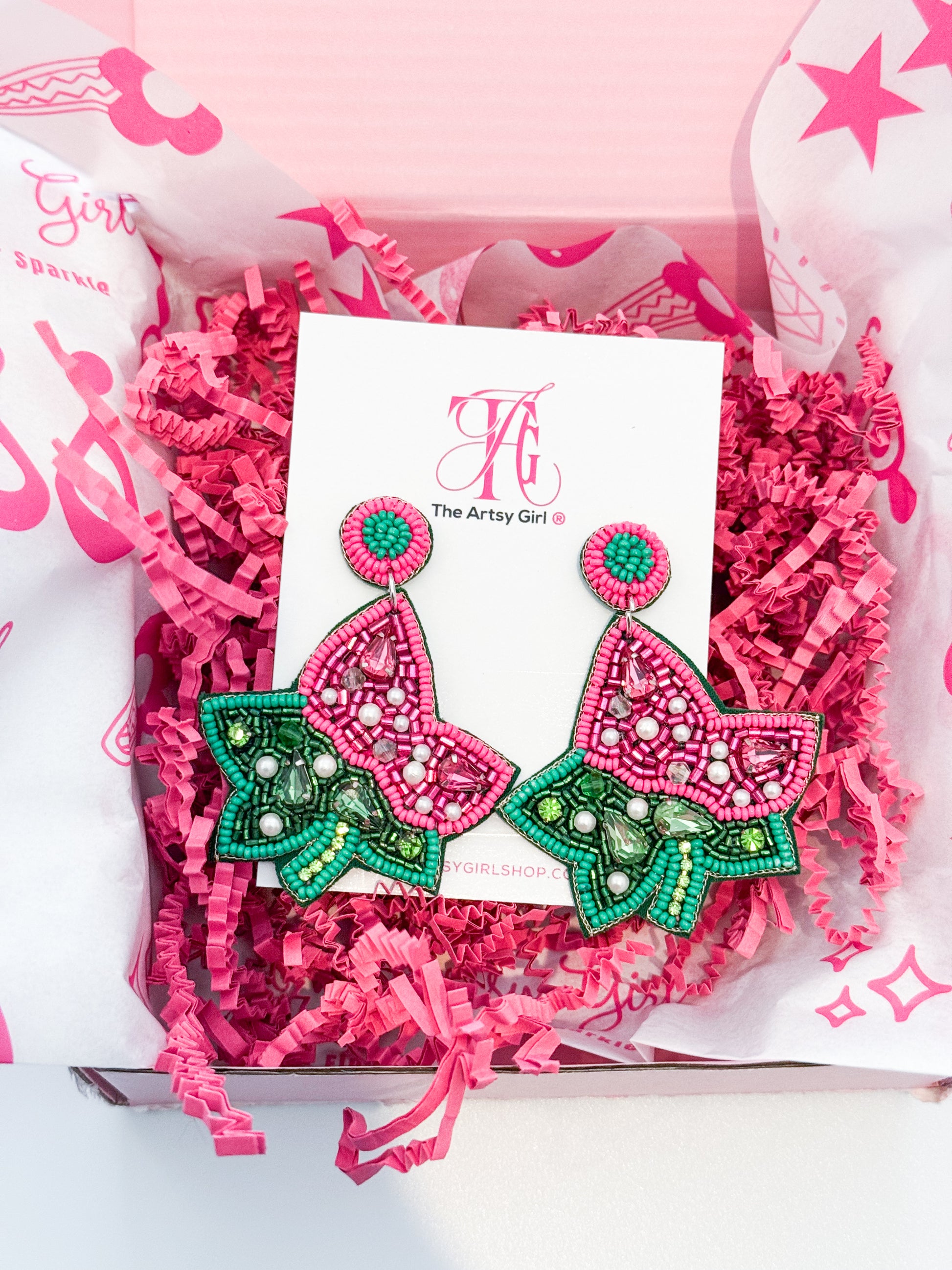 Bold, beautiful, and blooming with charm — our Ivy Love Earrings are a celebration of playful elegance. Featuring vibrant shades of hot pink and emerald green, these hand-beaded beauties are designed to dazzle with every turn. The ivy-inspired shape symbolizes growth and connection, while sparkling crystals and pearls add that perfect pop of glam.