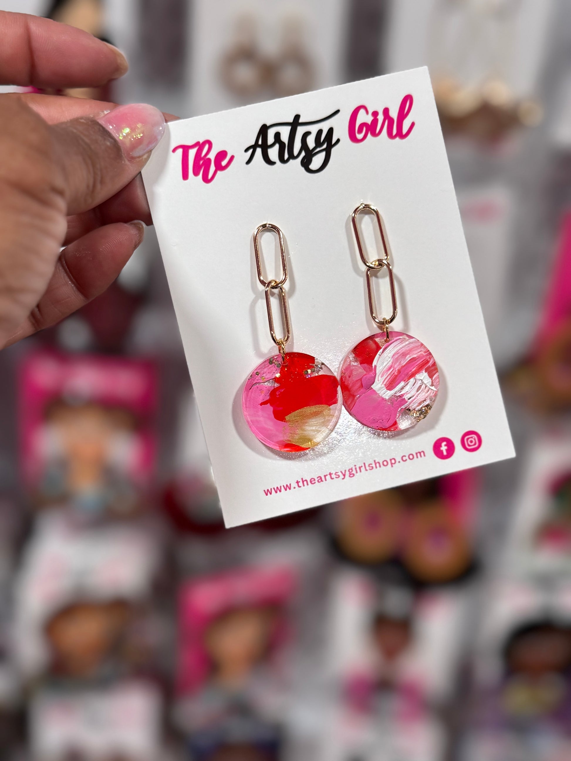 These elegant, hand-painted earrings feature interlocking links in vibrant, blooming hues, symbolizing the beauty of bonds that grow and flourish over time. Lightweight and versatile, they’re perfect for adding a touch of artistry to any outfit.