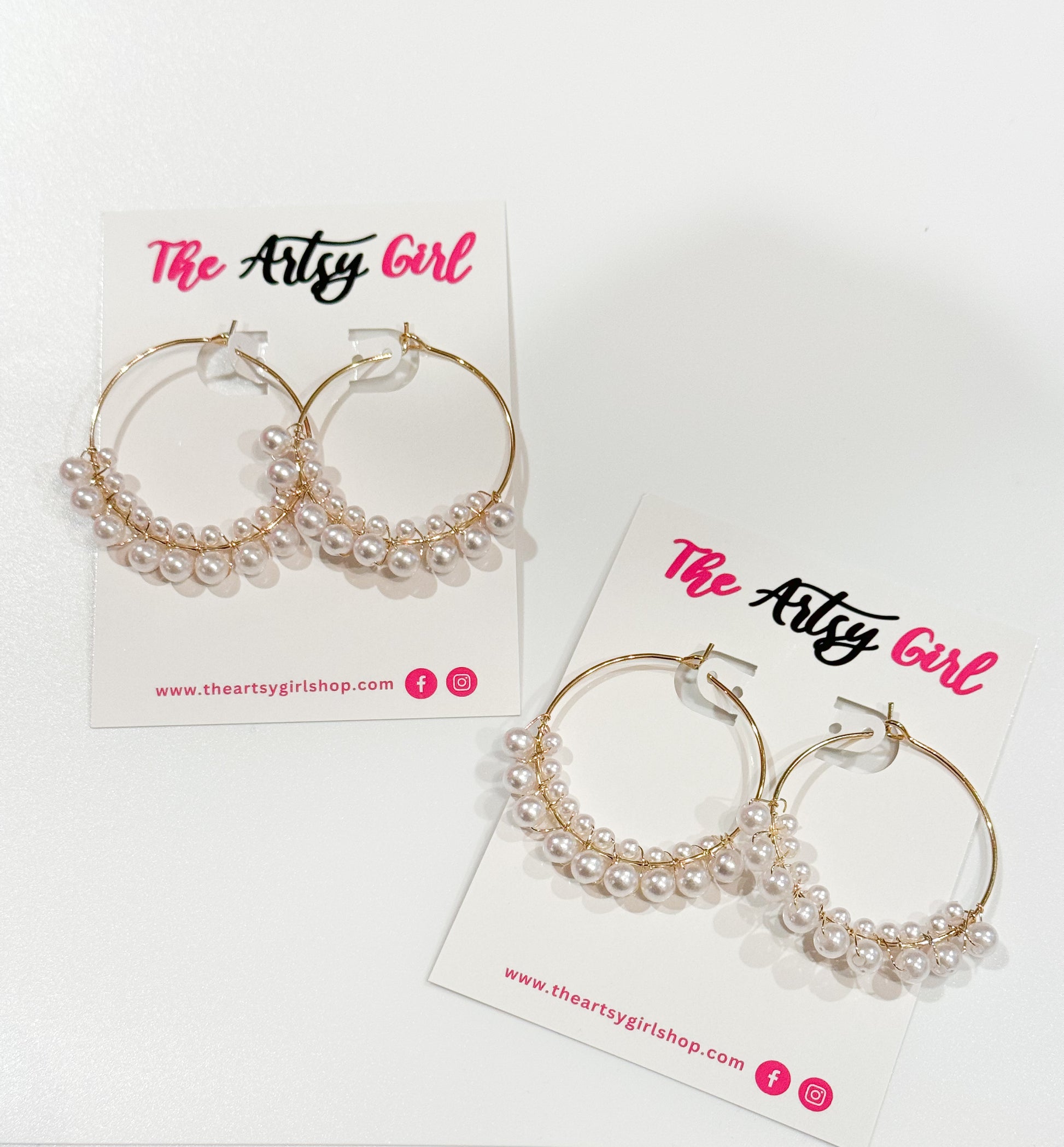 Get ready to add a touch of whimsy to your outfit with Pearl Me Happy earrings! These faux pearl earrings wrap around a gold colored hoop for a playful touch. Perfect for adding some razzle dazzle to your day.