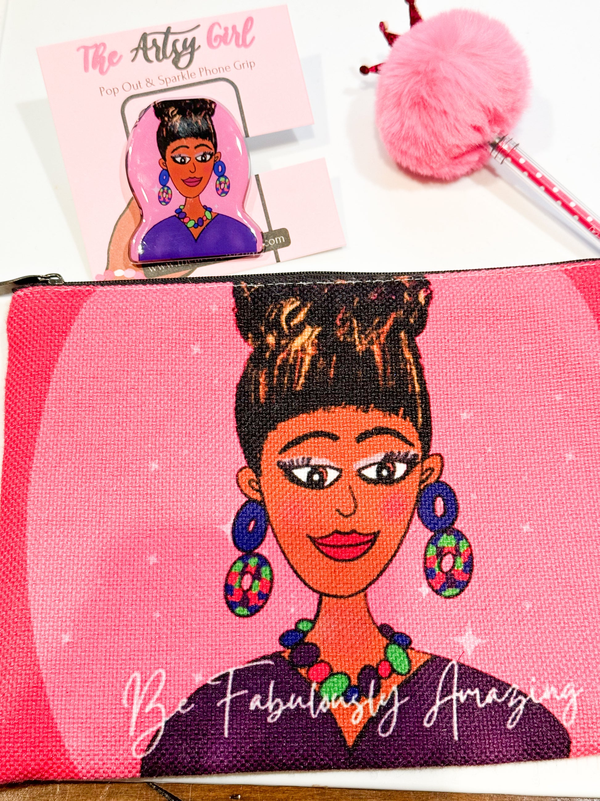 Sparkle in The Artsy Girl swag and experience the magic of convenience with our innovative phone stand accessory, Pop Out & Sparkle!