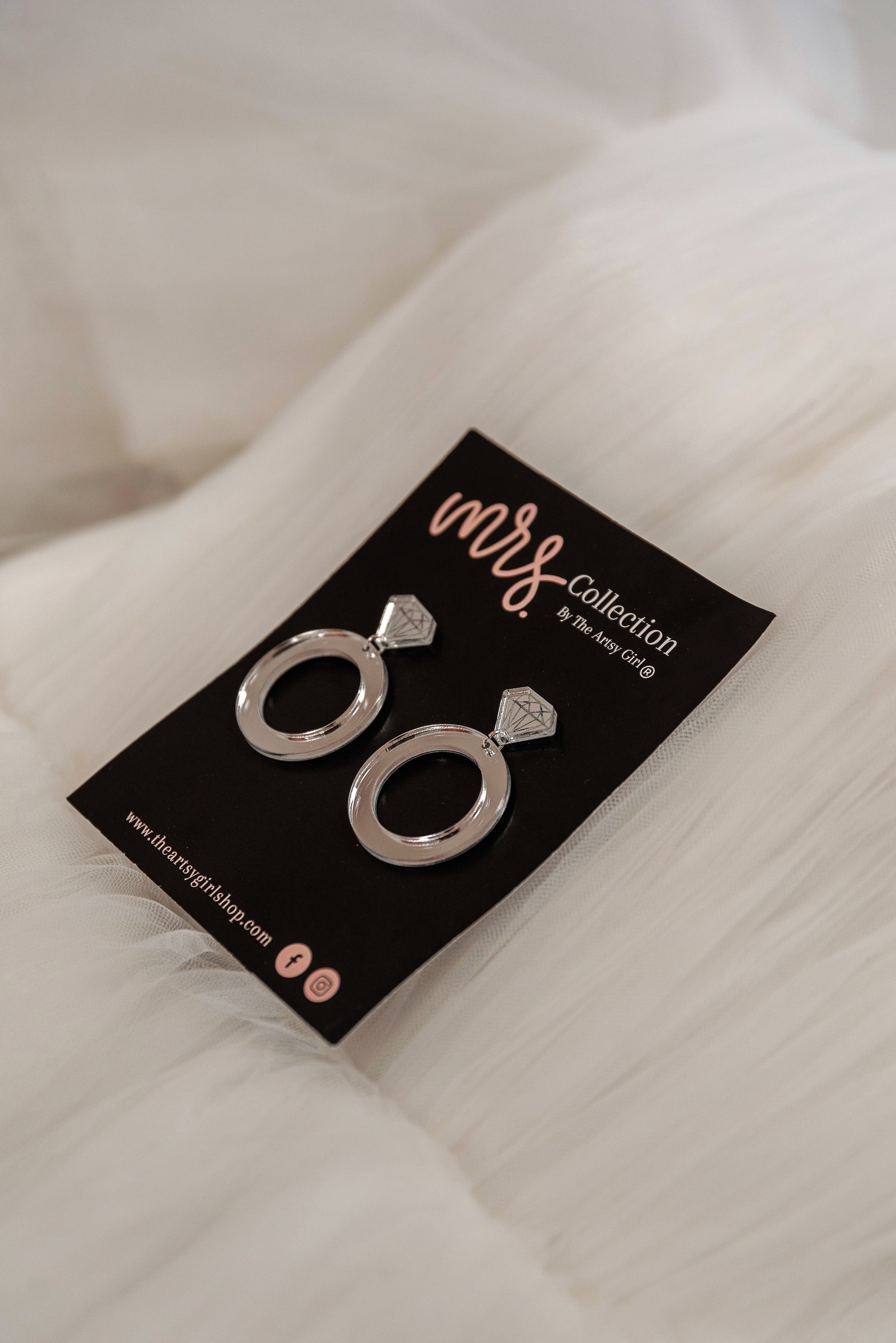 Crafted with meticulous attention to detail, these exquisite earrings are designed to mirror the beauty of an engagement ring, adding a touch of romance to your ensemble. Made from high-quality mirrored acrylic, they radiate a mesmerizing brilliance that captures the light from every angle.