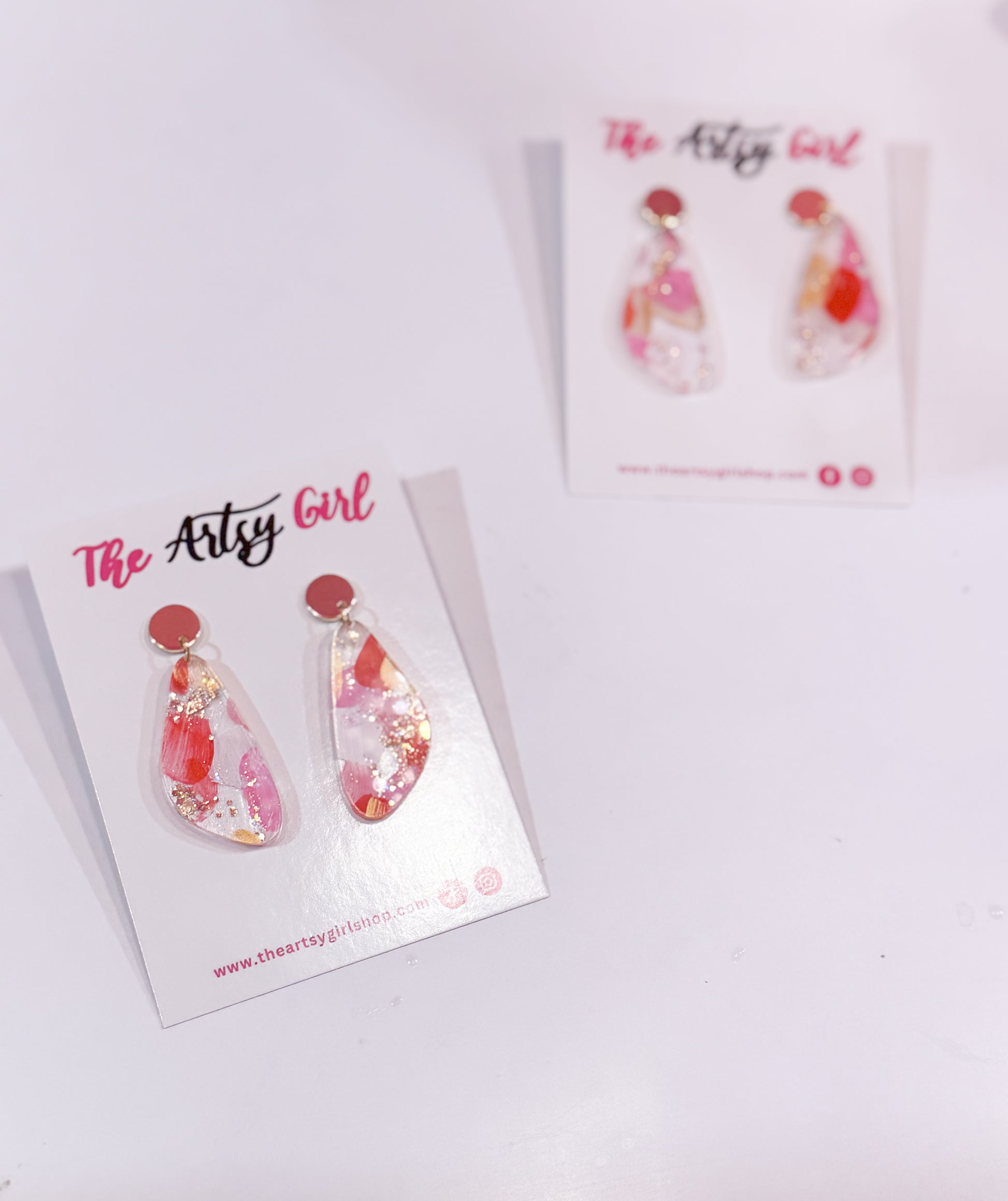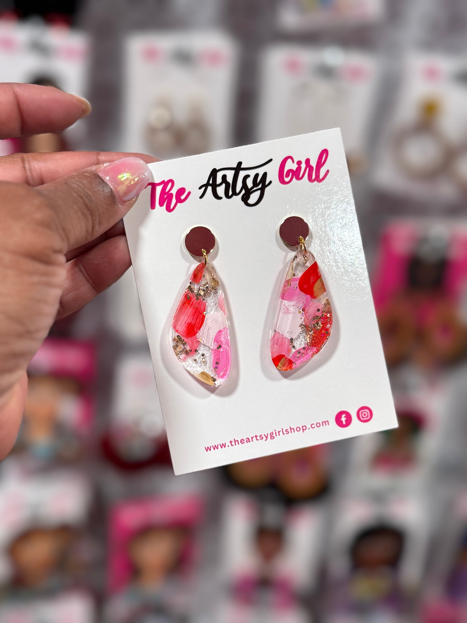 Add a touch of sparkle to your outfit with The Evie - Gold Sparks earrings. Hand painted with a variety of gold tones and a hint of glitter, these earrings are sure to make a statement. Elevate your style with these unique and playful accessories! (Sparkles included, of course).