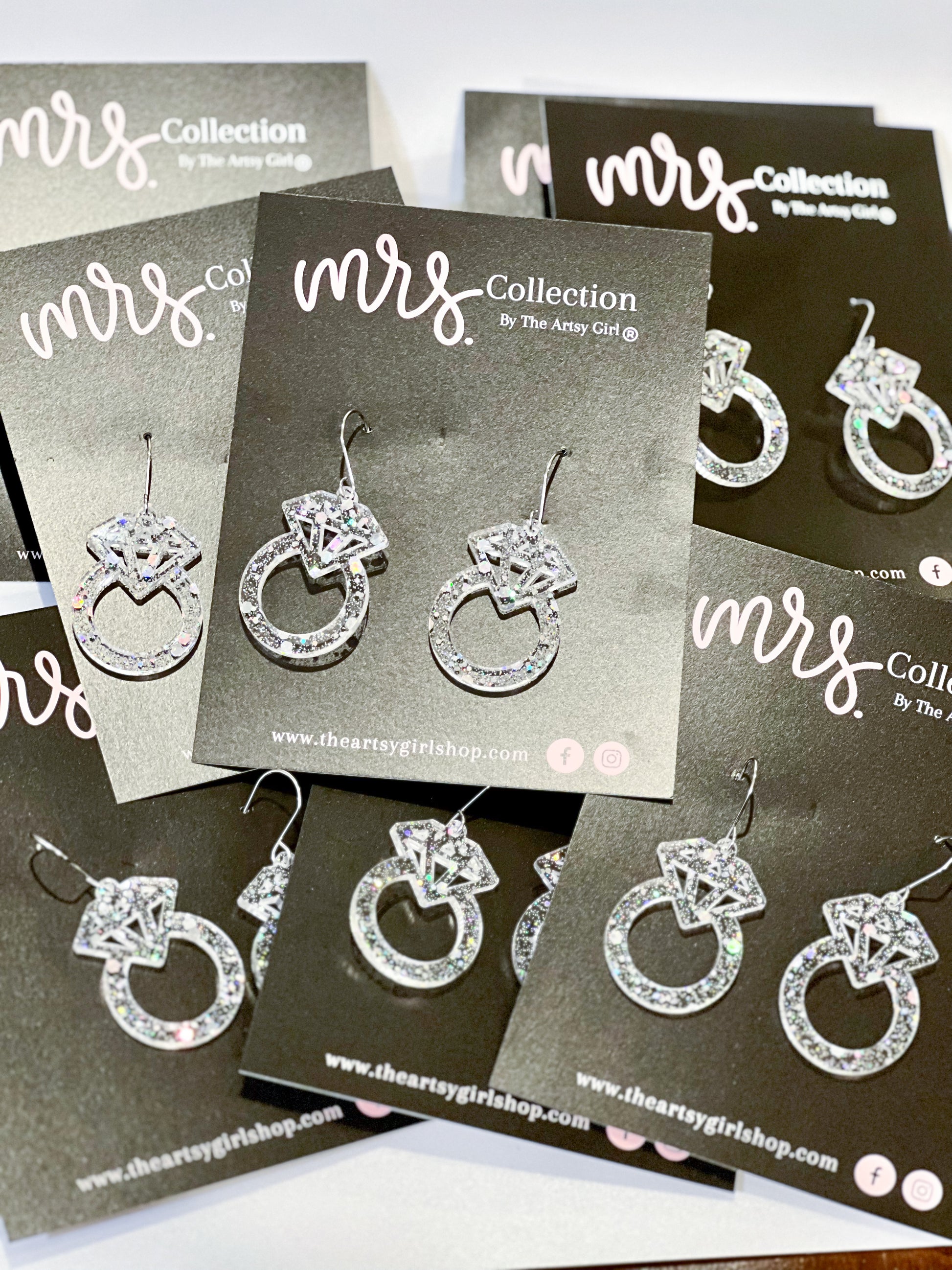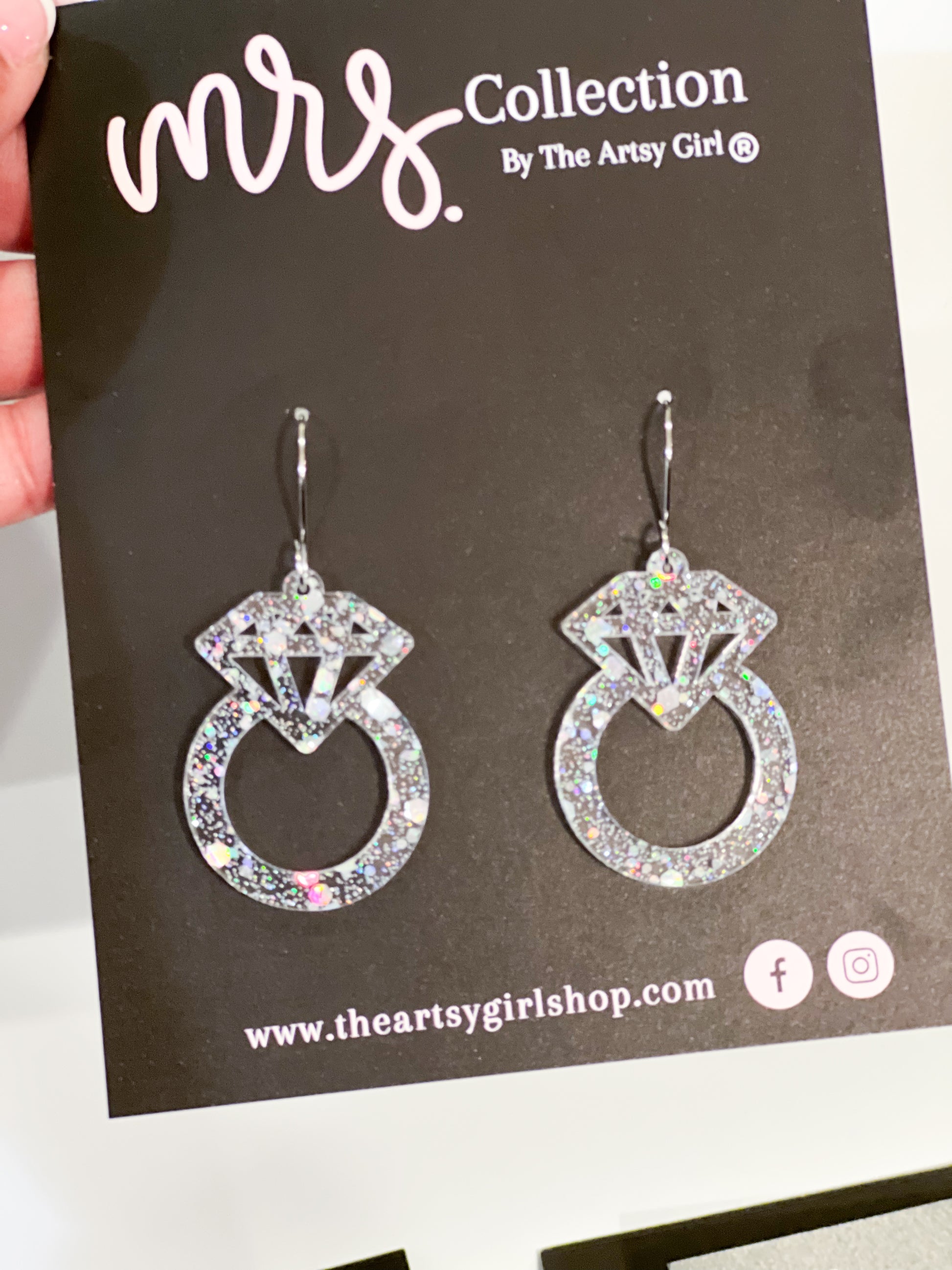 Introducing our exquisite “Wifey” acrylic earrings, the perfect accessory to add a touch of sparkle to bridal showers and engagement parties. Crafted with precision, these earrings feature a sleek acrylic base with shimmering glitter. The ring shape adds a charming, personalized touch for brides-to-be. These lightweight earrings are comfortable to wear throughout the festivities, allowing you to shine with confidence. Elevate your bridal look and celebrate your journey to “wifey” status in style with these stunning earrings. Make a statement and cherish the memories of your special moments with these glamorous, one-of-a-kind accessories.