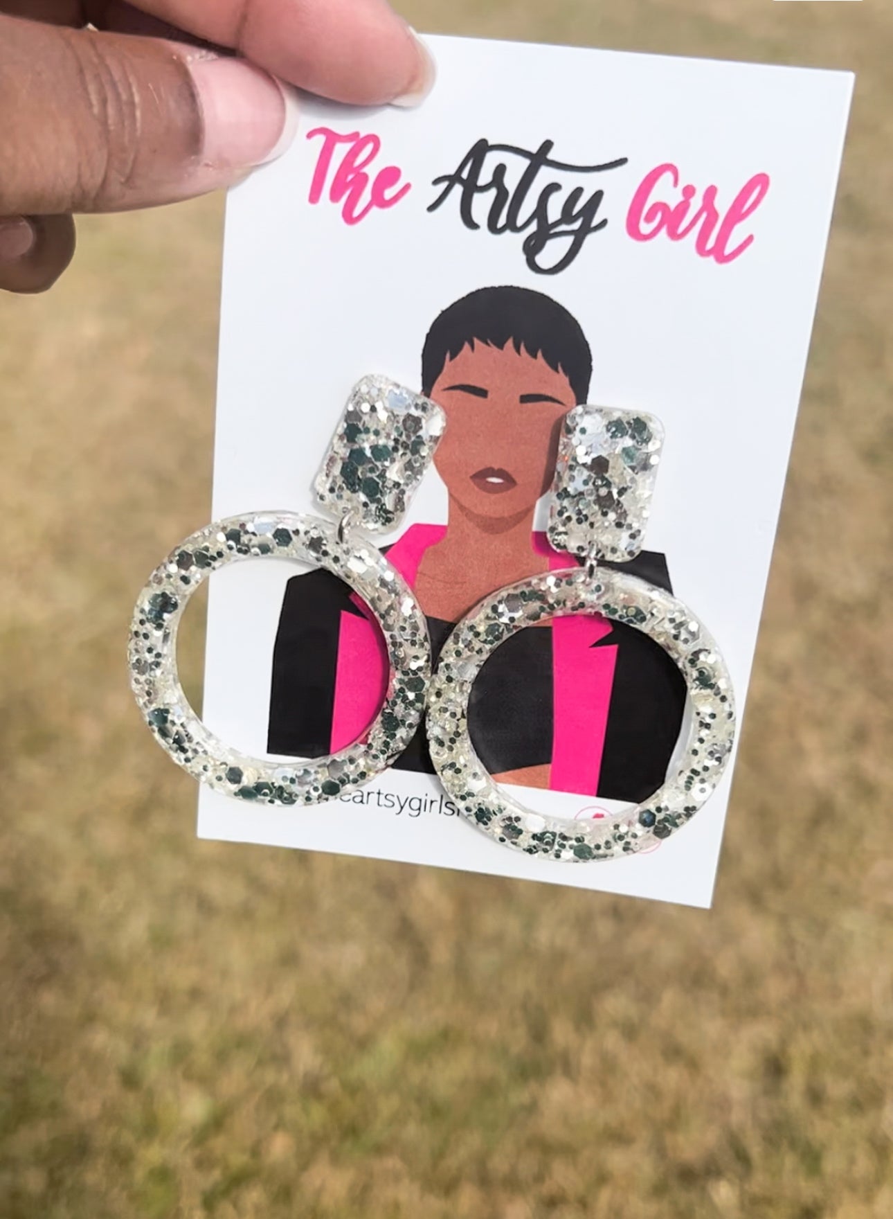 Elevate your style with our "Window Seat" glitter earrings. These striking accessories feature intricate patterns and vibrant glitter for a touch of vintage charm. Their unique design resembles traditional door knockers, making them a statement piece for any occasion. Express your individuality with a dash of nostalgia and sparkle in one stunning piece.